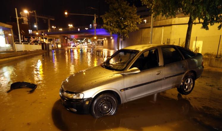 وتعذر السير في العديد من النقاط على شبكة الطرقات, وغمرت المياه قسما من الطريق السريع آيه-8.