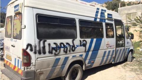 خط مستوطنون عبارات تهديد ووعيد بالقتل على احدى سيارات المواطنين في خربة بيت سكارية الواقعة وسط مجمع مستوطنة "غوش عتصيون" جنوب بيت لحم.