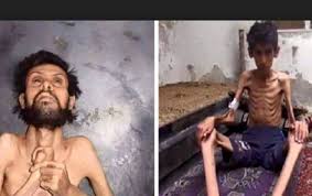 وأظهرت الصور الفوتوغرافية التي التُقطت بالمدينة جثث رجال طاعنين في السن وهَن العظم منهم، وأطفالا رضع جائعين امتقعت وجوههم.
