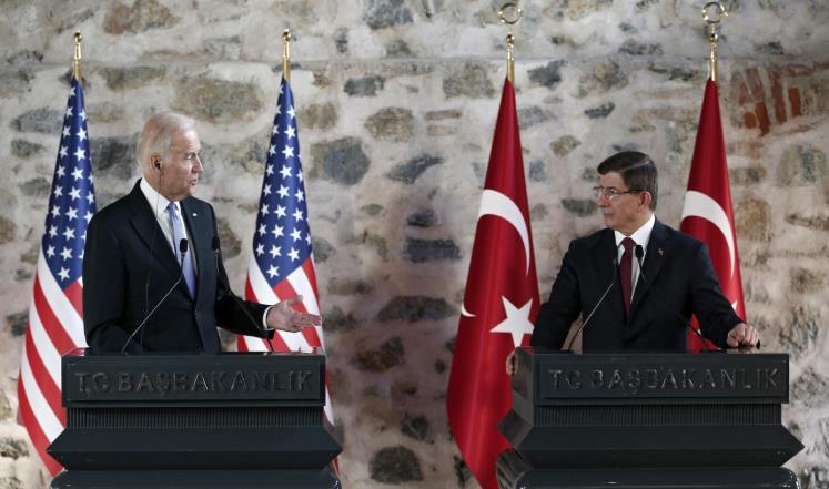 وفي تصريحاته بإسطنبول, قال بايدن إنه بحث مع المسؤولين الأتراك سبل دعم القوى العربية السُنية في سوريا لإغلاق المنافذ أمام تنظيم الدولة على الحدود التركية السورية, وأشاد بالجهود التي تبذلها أنقرة لمكافحة التنظيم. وبعد اجتماعه بداود أوغلو, يلتقي بايدن الرئيس التركي رجب طيب أردوغان.