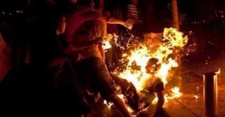 اقدم شاب فلسطيني على احراق نفسه على دوار بني سهيلا بمدينة خانيونس جنوب قطاع غزة .