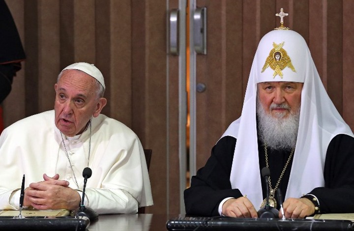 وبثت إذاعة الفاتيكان، مساء أمس الجمعة، الإعلان المشترك، الذي صدر في ختام لقاء بابا الكاثوليك فرنسيس، مع بطريرك موسكو وسائر روسيا كيريل، في مطار خوسيه مارتي، بالعاصمة الكوبية هافانا.