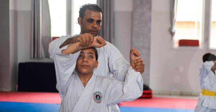 انه مدرب منتخب فلسطين للكاراتيه حسن الراعي (38 عاما) والذي بادر في تدريب ثمانية أشبال من المكفوفين على مدار عدة أشهر, قبل أن يسافر وأربعة منهم إلى دولة الإمارات للمشاركة في بطولة الأهلي الدولية المفتوحة الخامسة, والدوري العالمي الممتاز "دبي للكاراتيه 2016" التي نُظمت في الفترة من 7-11 إبريل الحالي ، بمشاركة 56 دولة عربية وأوربية, ليحصد اثنان من اللاعبين الأربعة مراكز ضمن الخمسة الأوائل على العالم .