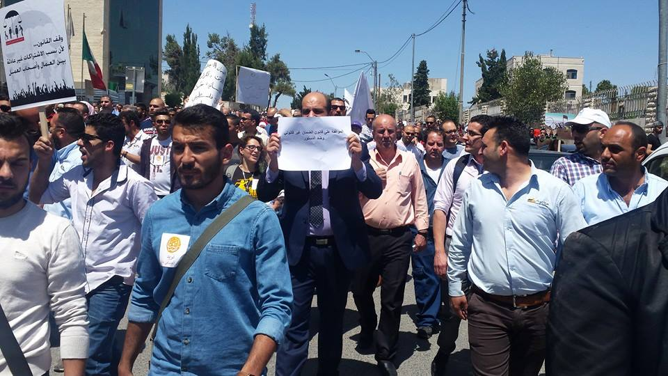 تظاهر آلاف المواطنين أمام مقر مجلس الوزراء في رام الله ظهر اليوم الثلاثاء رفضا لقانون الضمان الاجتماعي .