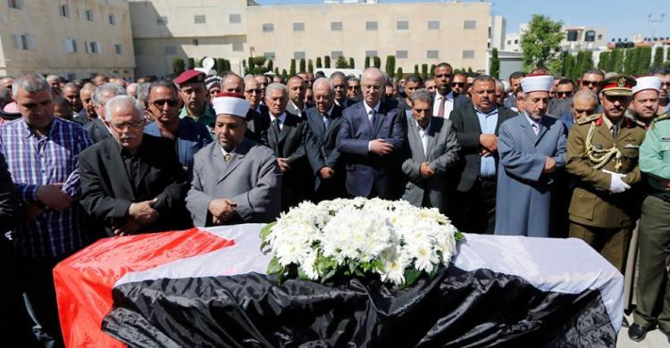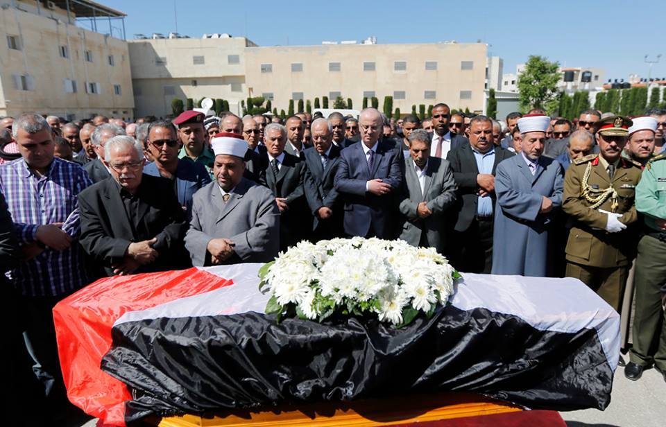وكان جثمان المرحوم وصل بطائرة مروحية أردنية إلى مهبط الطائرات في مقر الرئاسة برام الله.