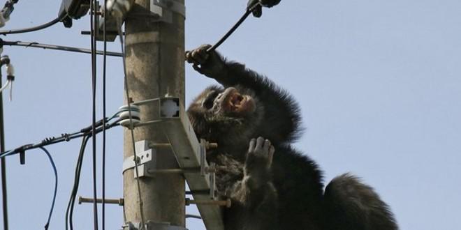أقدم شمبانزي باليابان على الهرب متسلقاً أحد أعمدة الكهرباء الطويلة في حديقة الحيوان الموجودة شمال البلاد قبل أن يستعيد مسؤولو الحديقة السيطرة عليه باستخدام الأسهم المهدئة وتحضير شبكة من الأسلاك التي حملها عشرات العمال.وبحسب أحد مسؤولي الحديقة، فقد أسفر سقوط الشمبانزي الذي يدعى “تشاشا”، على هذه الشبكة عن إصابته ببعض الجروح والكدمات الطفيفة. وكان المشاهدون اليابانيون قد تابعوا عن كثب محاولة هروب الشمبانزي، وهو يتفادى آسريه، متنقلاً عبر خطوط الكهرباء في حالة من الهياج، بحسب تقرير نشرته صحيفة الغارديان البريطانية، الجمعة 15 أبريل/نيسان 2016.