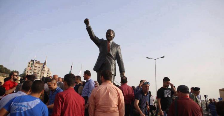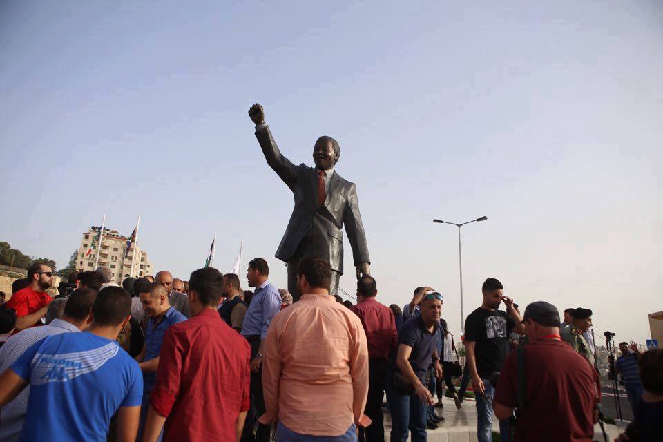 دشن رئيس السلطة الفلسطينية محمود عباس، مساء اليوم الثلاثاء، ميدان المناضل الأممي الرئيس الأسبق لجنوب إفريقيا نيلسون مانديلا، وذلك في حي الطيرة بمدينة رام الله، كما أزراح الستارة عن تمثال ضخم للزعيم الكبير.