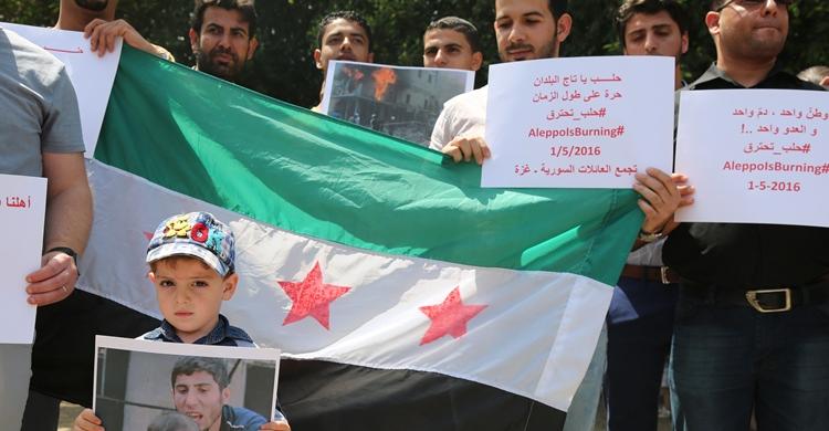 خبر بالصور .. لاجئو سوريا في غزة : الجرح واحد يا حلب