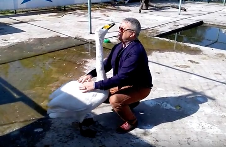 تداول رواد امواقع التواصل الاجتماعي، فيديو يظهر بجعة تشتكي أقرانها من الطيور في القفص، بطريقة مدهشة لمدير حديقة الحيوانات، في مدينة بارناوول الروسية.