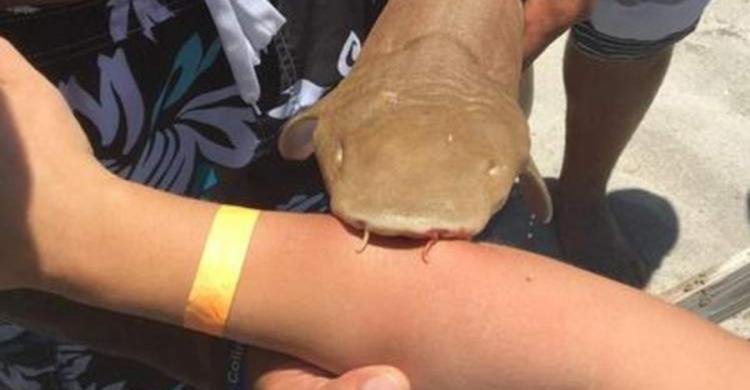 والتقطت عدسات الكاميرا صورة للسيدة (23 عاما)  في شاطئ بوكا راتون بولاية فلوريدا الأميركية، مع قرش "النيرس"، الذي يبلغ طوله قدمين، وقد غرس أسنانه في ذراعها.