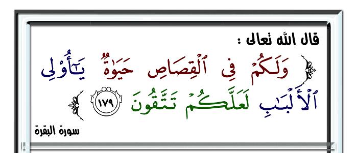 حيث أن آخر ما قرأته المغدورة البدري من القرآن الكريم، وهي الآية .. "ولكم في القصاص حياة يا أولي الألباب".