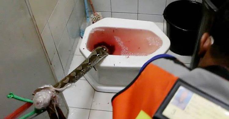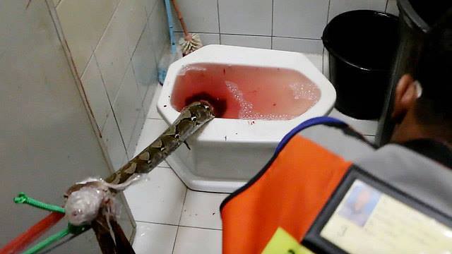 ذكرت وسائل إعلام محلية في تايلند, أن ثعبان قام بمهاجمة رجل من أسفل جسده أثناء استعماله المرحاض "عبر من شبكات الصرف الصحي".