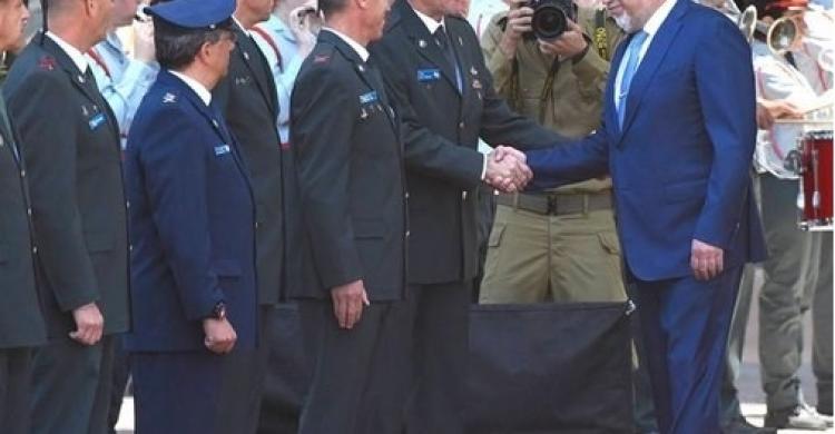 واستقبل رئيس الاركان الاسرائيلي "ايزنكوت" وضباط هيئة الاركان العامة ومدير عام وزارة الجيش الجديد ايضا الجنرال احتياط "اودي ادم" الوزير الجديد في حفل رسمي تخلله استعراضا لطابور من جنود التشريفات.