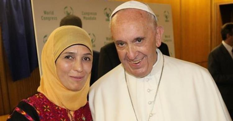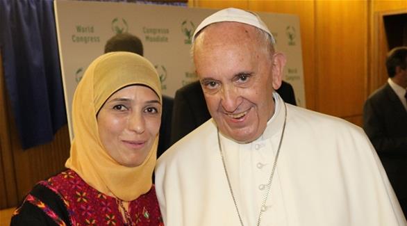 خبر الفلسطينية الفائزة بجائزة أفضل مُعلم في العالم تلتقي بابا الفاتيكان