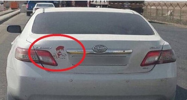 تفاجأ الكويتيون البارحة بوجود صورة للرئيس العراقي السابق صدام حسين على سيارة تتجول في الشوارع، وألقت السلطات الكويتية القبض على صاحب المركبة وهي“تويوتا كامري”، والسائق سعودي.