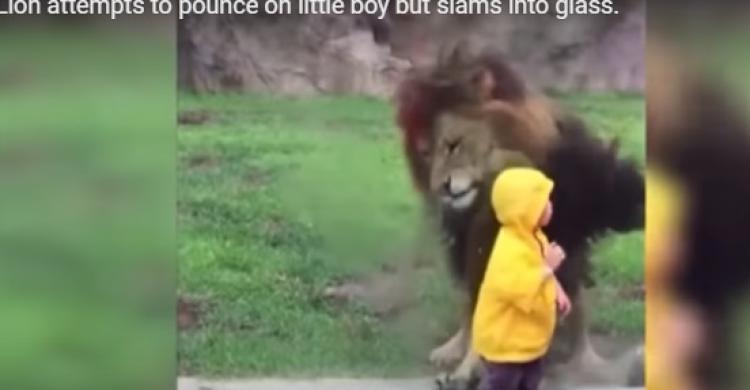 وفي بداية الشريط، يظهر الطفل الصغير وهو يشاهد أسدا كان يجلس على الأرض على بعد أمتار قليلة منه، وعند استدارة الطفل لينظر إلى الجهة المقابلة، نهض الأسد وركض منقضا على الطفل لافتراسه، لكن ما حدث لم يكن في حسبان الأسد، حيث ارتطم بزجاج عازل كان يفصل بين الزوار وحيوانات الحديقة، ليعود الأسد خائبا، خالي الوفاض.