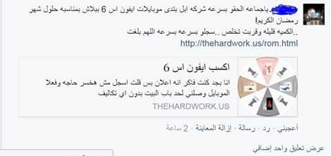 حذرت جهات ذات إختصاص من انتشار فايروس الكتروني خطير ينتشر بمجرد الضغط على رابط يسبقه كلمات تُغري المتلقي بالحصول على هاتف ايفون اس 6 مجانا وبمجرد الضغط عليه واتباع الخطوات ينتشر تلقائيا في التعليقات وأماكن أخرى.