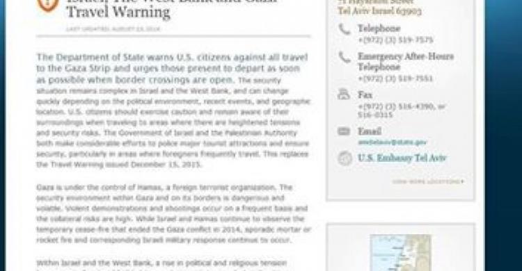 ويقول التحذير :"لا يزال الوضع الأمني يعاني من تعقيدات في إسرائيل والضفة الغربية ، و يمكن أن تتغير بسرعة الأمور بسرعة بسبب البيئة السياسية ، والأحداث الأخيرة، والموقع الجغرافي، وبالتالي ، يجب على المواطنين الأميركيين توخي الحذر والبقاء على بينة من محيطهم عند السفر إلى المناطق المتوترة وذات المخاطر الأمنية .