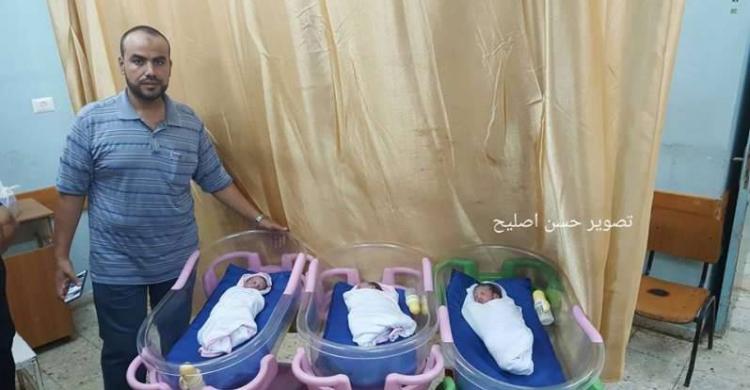 رزق مواطن غزي من مدينة خانيونس جنوب قطاع غزة، صباح اليوم السبت، بثلاثة توائم، بعد 13 عاماً من الانتظار.