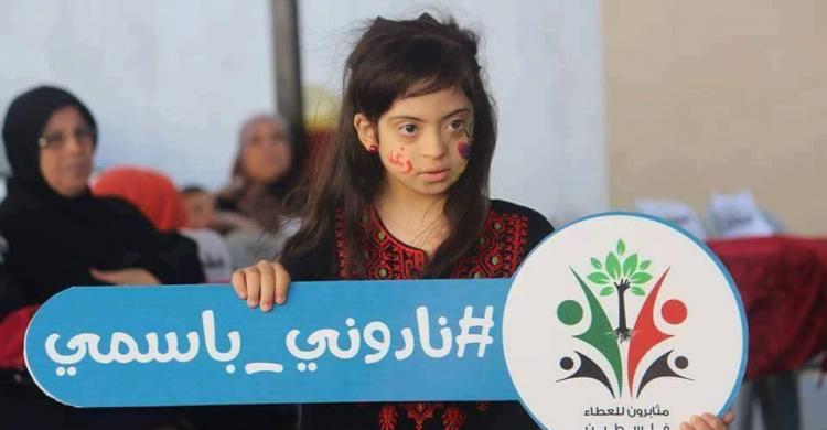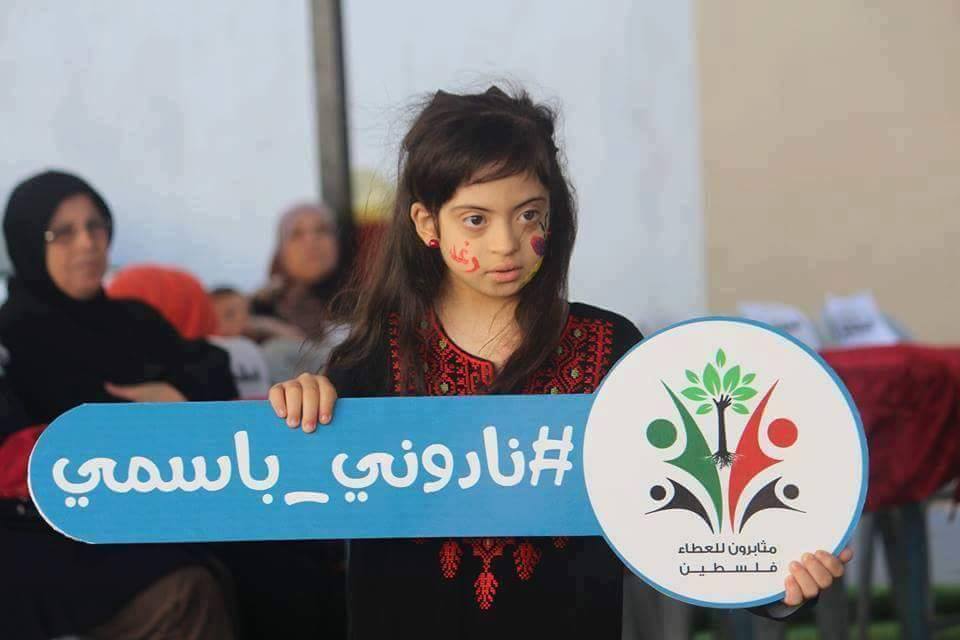 نظم فريق مثابرون بالعطاء الشبابي بالتعاون مع وزارة الثقافة الفلسطينية فعاليات الحملة التعريفية التي بدأت ‏بهاشتاغ ‏‏#نادوني_باسمي، يوم الخميس الماضي، في مدرسة سنابل للتربية الخاصة غرب مدينة غزة والذي يهدف إلى دعم ‏مرضى ‏‏"متلازمة داون‎" ‎ومحاولة دمجهم في المجتمع .‏ ‏