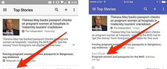 وتظهر العلامات في نص رمادي صغير فوق روابط المقال، جوجل نفسها لا تصدر الأحكام ولا تخبرك بخلاصة المقال في نتائج البحث، بل هي مجرد علامة تقول "اقرأني لتعرف الحقيقة"، ولكنها لا تزال طريقة لطيفة للتأكد من أن القراء يكونون رأياً مستنداً إلى حقائق على الأقل وليس على خيال.