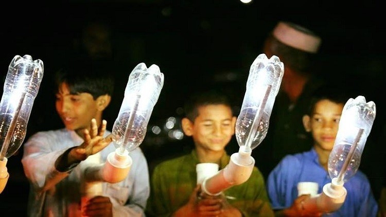 أما من أجل الحصول على الضوء في الليل فيتم تزويد هذه القوارير البلاستيكية بمصابيح LED متصلة عبر أسلاك بلوحة تحول الطاقة الشمسية الصغيرة إلى ضوء. وتحتاج إضاءة هذه المصابيح إلى التعرض للشمس ما بين 3 و4 ساعات لتظل مضيئة ليلة كاملة.