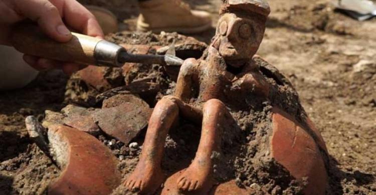وتم العثور على المكتشفات الأثرية من الفترة البرونزية الوسطى داخل جرة مصنوعة من الفخار فيها منحوتة لرجل، طولها 18 سنتيمترًا، ولم يعثر على ما يشبهها حتى الآن، وتمتاز بدقة صناعتها.