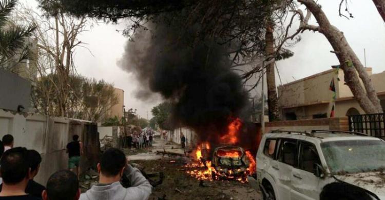 وقالت مصادر محلية، بأن الانفجار الأول تم بواسطة سيارة مفخخة مقابل بوابة معسكر القوات الخاصة التابعة للصاعقة، بمنطقة بوعطني شرقي بنغازي، وسقط ضحايا مدنيين نتيجة الانفجار.