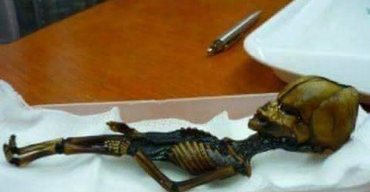 بدأ الكثيرون يتساءلون عما إذا كان هذا الهيكل العظمي لجنين بشري تم إجهاضه أو لأحد أنواع القردة النادرة أو مجرد دمية متقنة الصنع أو لكائن فضائي .