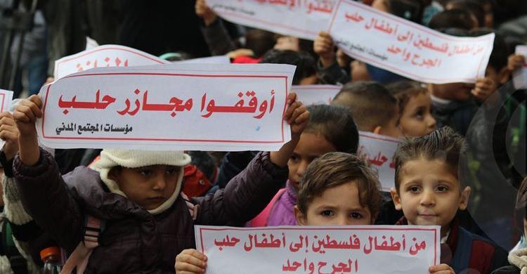 خبر بالصور.. أطفال فلسطين يتضامنون مع حلب