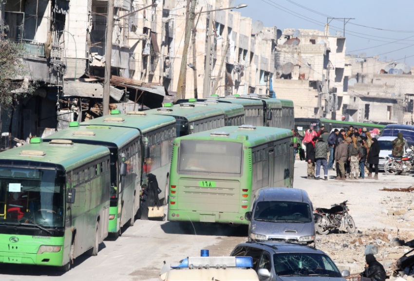 توقفت عمليات الإجلاء من آخر مناطق خاضعة لسيطرة مقاتلي المعارضة في حلب السورية، يوم أمس الجمعة، بعد أن طالب مسلحون موالون للحكومة بإخراج المصابين من قريتين الفوعة وكفريا الشيعيتين اللتين يحاصرهما مقاتلو المعارضة.