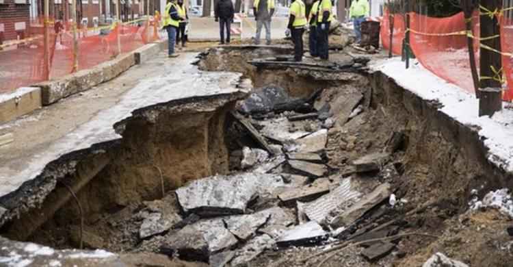 أدى كسراً في خط المياه الرئيسي في مدينة فيلادلفيا الأميركية، إلى التسبب في حفرة بأحد شوارع المدينة، حيث كانت كبيرة بما يكفي لابتلاع سيارتين. الحفرة التي وصلت مساحتها 30 قدماً في 10 أقدام، حدثت عندما انهار جزء من شارع "إيست بوسطن"، عقب حدوث كسر في خط المياه في الفترة ما بين التاسعة صباحاً وحتى العاشرة صباح الأحد.