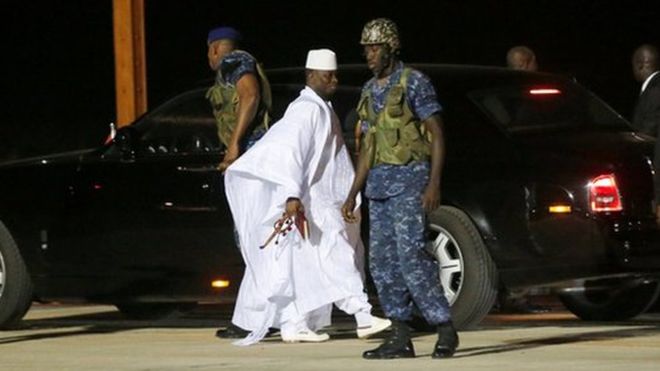 لا يزال الرئيس الجديد أداما بارو في دولة السنغال المجاورة، ولم يتضح بعد متى سيعود لبلده. لكن قوات من دول غرب إفريقيا دخلت العاصمة الغامبية بانجو الأحد لتأمين وصوله.