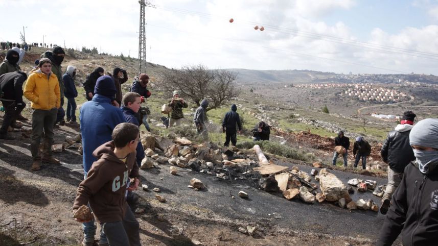 وجاء أن المستوطنين يلقون الحجارة باتجاه قوات الشرطة، بينما تحافظ قوات الأمن على مسافة عشرات الأمتار بينهم وبين البؤرة الاستيطانية.