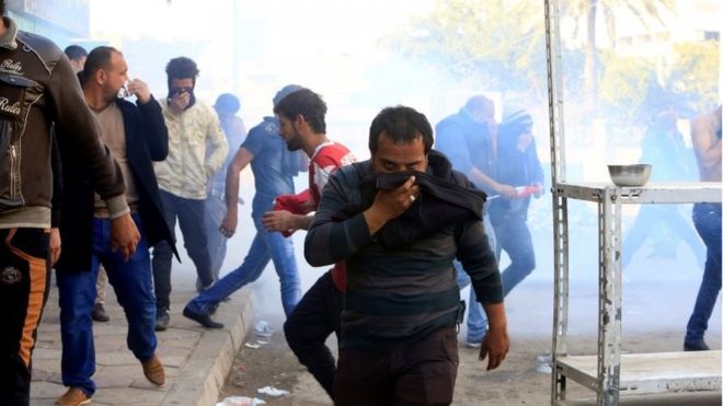 واندلعت الاشتباكات بعدما حاول المتظاهرون عبور جسر يصل إلى المنطقة الخضراء، التي توجد بها معظم المقار الحكومية الرئيسية والبعثات الدبلوماسية.