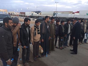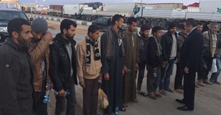 ونشر الجيش المصري صورا للمختطفين وبينهم طفل لدى وصولهم الى معبر السلوم الحدودي في مصر.