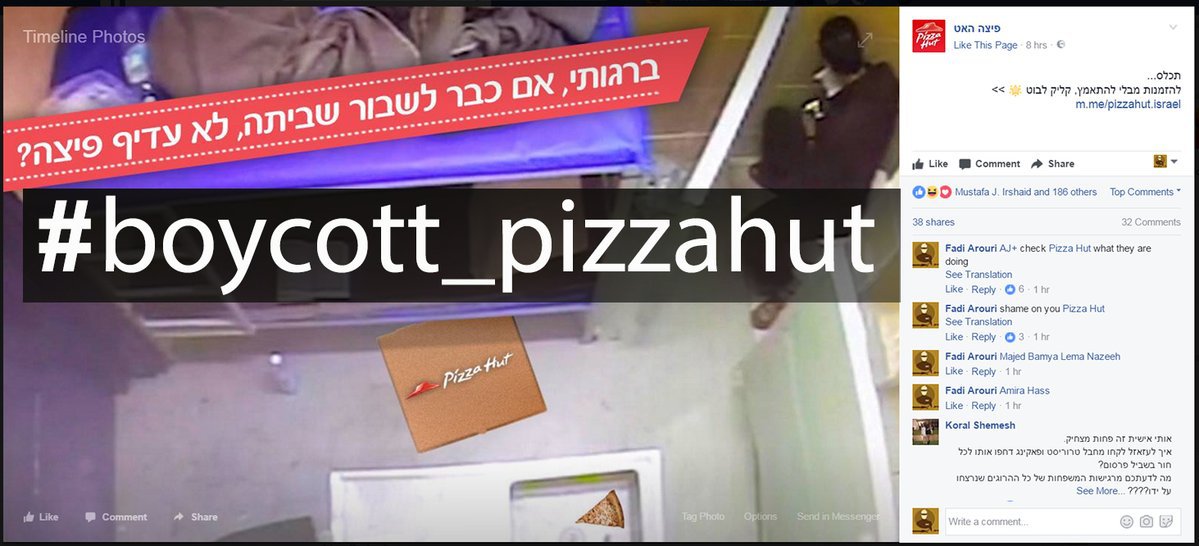 أطلق نشطاء ومغردون عبر شبكات التواصل الاجتماعي، هاشتاغا يدعو إلى مقاطعة الشركة العالمية "بيتزا هت".