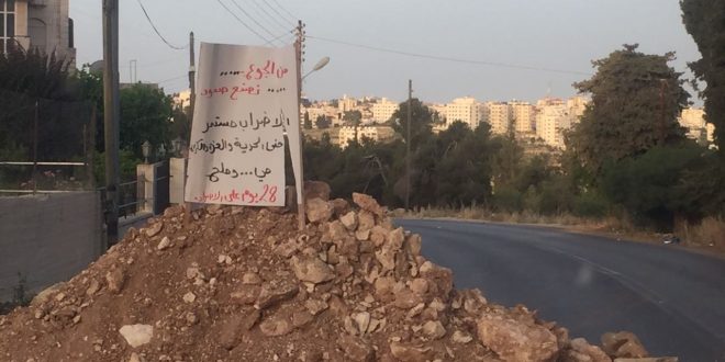كما أغلق الشبان، أيضًا، طرق بيرزيت، بتين، دورا القرع، الجلزون، عين سينا، جفنا، سلواد، ويبرود.