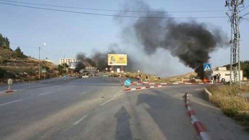 كما أغلق هؤلاء الشبان طريق نابلس- رام الله بالإطارات المشتعلة وحاويات القمامة بالقرب مخيم الجلزون شمال رام الله، ومنعوا الحركة عبر الشارع.