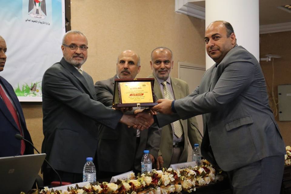 وتسلم درع التكريم الدكتور عدنان الحجار رئيس الجامعة من قبل هيئة الاعتماد والجودة، عقب إعلان النتائج.