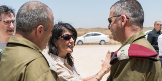 زارت سفيرة واشنطن لدى الأمم المتحدة، نيكي هيلي، ظهر أمس الخميس، الكيبوتسات “الإسرائيلية” المجاورة لحدود قطاع غزة.