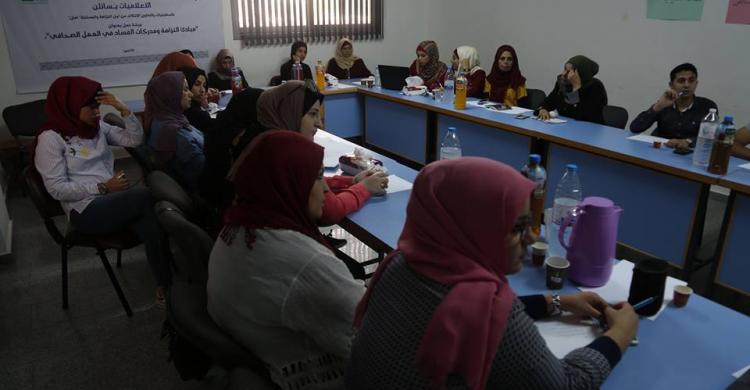 افتتحت مؤسسة فلسطينيات في مقرها بمدينة غزة، اليوم، ورشة عمل بعنوان "تعزيز دور الإعلام في مكافحة الفساد والرقابة على الأداء العام"، كبداية انطلاق لمبادرة "الإعلاميات يُسائِلن"، التي تنفذها بالتعاون مع الائتلاف من أجل النزاهة والمساءلة "أمان"، بحضور مجموعة من الصحفيات المهتمات بالكتابة لقضايا تعالج الشأن العام بشكل معمّق.