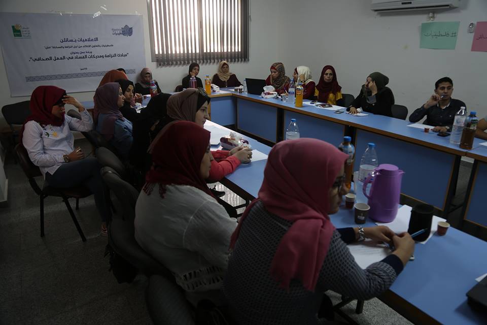 وقالت منى خضر منسقة فلسطينيات، إن المبادرة ترتكز على تكثيف العمل مع الإعلاميات والإعلاميين لرفع مستوى الوعي وبناء قدراتهم بمبادئ الشفافية والنزاهة بتحفيزهم على الرقابة على الأداء العام عبر كتابة تقارير مهنية وموضوعية تعمل على الكشف عن سوء الأداء وتركز على سبل معالجته.