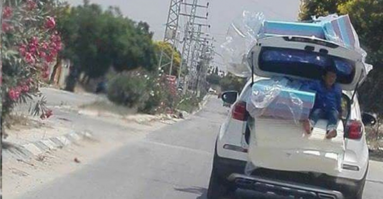 في التفاصيل، تُظهر الصورة، أن طفلاً يجلس في "شنطة" السيارة، على مجموعة من فرشات الإسفنج ويتجول فيه والده، بصورة غير أمنة وخطرة.
