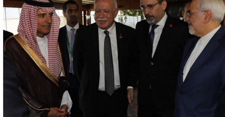 ونشرت وسائل إعلام إيرانية، الثلاثاء، صورا جمعت وزير الخارجية الإيراني جواد ظريف بنظيره السعودي عادل الجبير على هامش اجتماعات الأمانة العامة لمنظمة التعاون الإسلامي المنعقدة في مدينة إسطنبول التركية لبحث الأوضاع في مدينة القدس المحتلة.