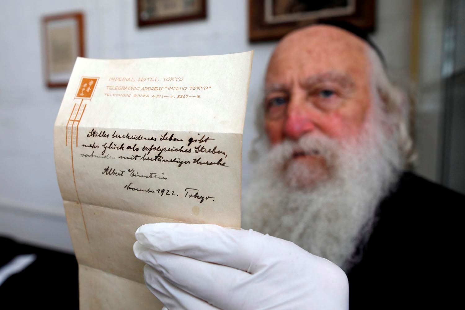 وقالت وينزر، إن في عام 1922 كان أينشتاين في طريقه إلى اليابان حين تم الإعلان عن منحه جائزة نوبل في الفيزياء لعام 1921. حين وصل إلى طوكيو لزم غرفته بالفندق ليدون خواطره على الورق.