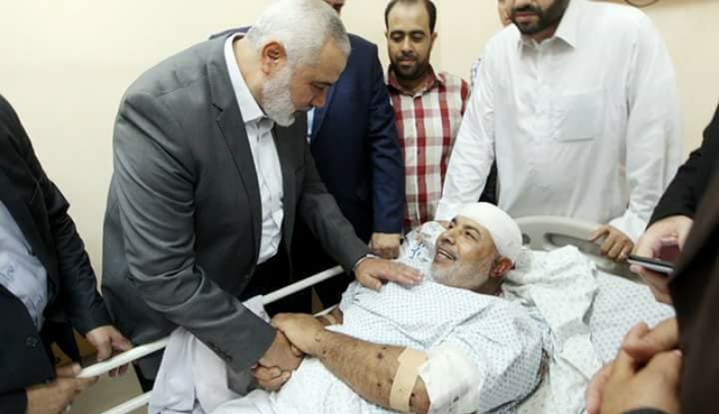 زار رئيس المكتب السياسي لحركة حماس، إسماعيل هنية، مدير عام قوى الأمن الداخلي اللواء توفيق أبو نعيم، في مجمع الشفاء الطبي للاطمئنان على حالته الصحية، بعد نجاته من محاولة اغتيال، ظهر اليوم الجمعة.