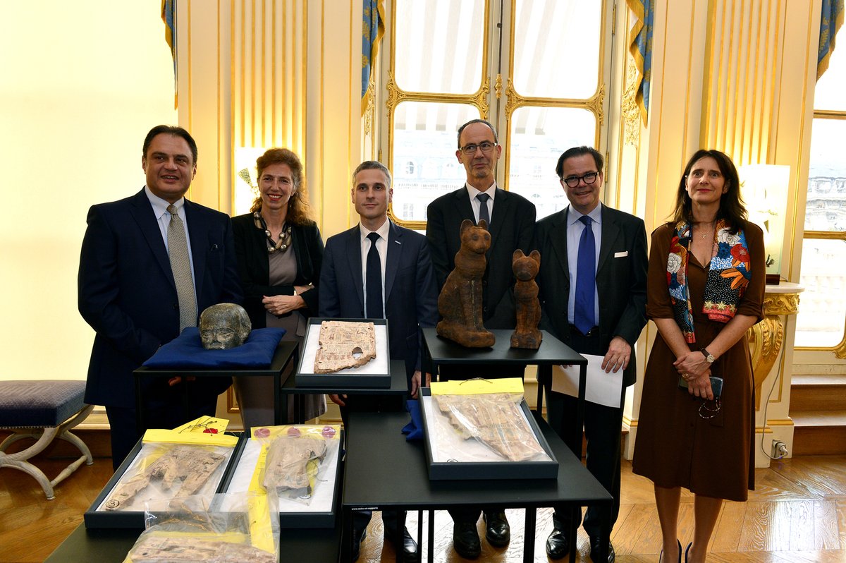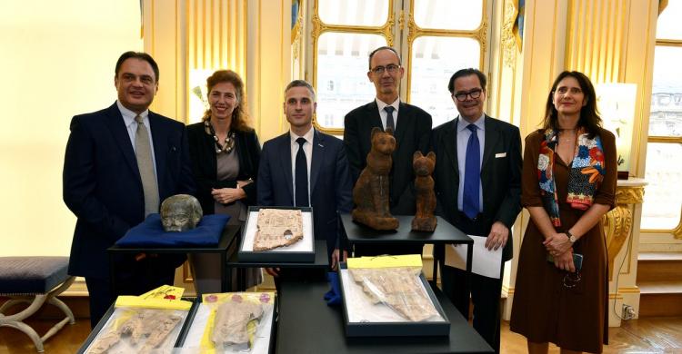 وذكرت وسائل إعلام دولية، أن القطع سلمت إلى سفير مصر في فرنسا، إيهاب بدوي، خلال مراسم أقيمت في وزارة الثقافة بباريس.