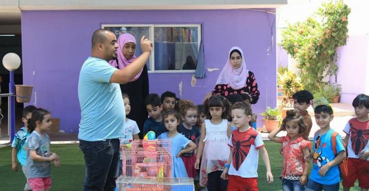 في غرفة يتداخل فيها أصوات الحيوانات الأليفة وزقزقة العصافير، يقف مجموعة من الأطفال متحلقين حول مدربهم الذي يعلمهم كيف يتعاملون مع الحيوانات برقة وحب وأيديهم بين الفينة والأخرى تمتد لتداعب الهامستر في يد رشيد عنبر.