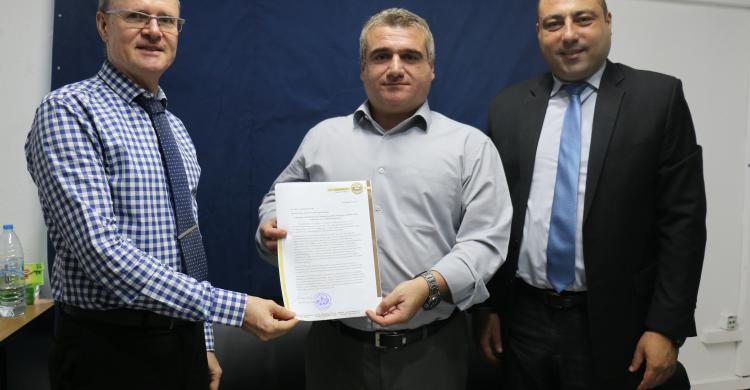 سلم وفد من جامعة الإسراء في غزة، رسالةً احتجاج للسيد "جيرنوت ساور" مدير مكتب المنسق الخاص لعملية السلام في الشرق الأوسط في قطاع غزة، بمناسبة الذكرى المئوية لوعد بلفور، لإيصالها إلى الأمين العام للأمم المتحدة السيد "أنطونيو غوتيريس".